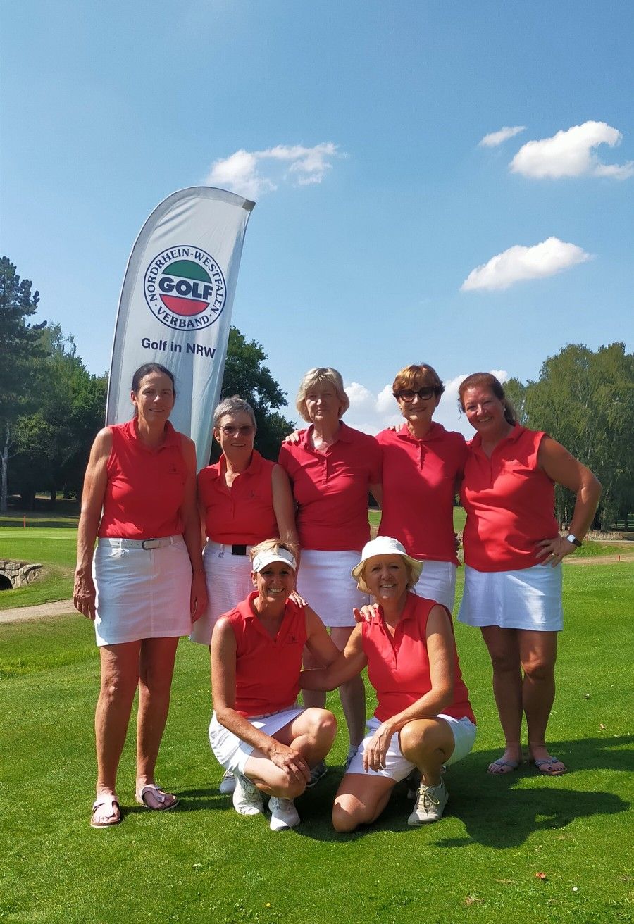 Geträumt davon, hat jede von uns - nochmals, wie bereits im vergangenen Jahr, zu den besten 16 Teams Deutschlands zu gehören und sich damit für das Endspiel im September zu qualifizieren. Um das zu schaffen und gut in Form zu kommen, waren unser Mannschaftstraining mit Christoph Wengorz und unser regelmäßiger Spieletreff eine gute Vorbereitung. Nach einer erfolgreichen Ligasaison in der Vorrunde, durften wir als Drittplatzierte zum NRW-Finale anreisen und trafen am vergangenen Wochenende auf die Damen des GC Velbert Gut Kuhlendahl. Im Lochspiel-Modus standen samstags und sonntags bei heißen 33 °C insgesamt neun Partien auf dem Programm. Nach einem ausgeglichenen Spielverlauf am ersten Tag war alles offen – es stand 2:2 unentschieden. Sonntagvormittag standen vier Einzel-Matchplays und ein Klassischer Vierer auf dem Programm. Nach sehr knapper Niederlage in ihrem Vierer am Samstag wollten Ilona Dahlhaus und Sabine von König Revanche und erkämpften am Sonntag den ersten Sieg für den GCL. Noch zwei weitere Punkte mussten her! Aussichtsreich in Führung lag, mit Unterstützung ihrer Tochter Lynn, Yvonne Hageleit-Schreckenberg, die diese Führung nicht mehr abgab. Knapp an Loch 17 und 18 mussten sich Britta Hasselmann, mit Caddy Jutta Lenz, und Britta Lauer-Gwosdek den Vertreterinnen von Velbert geschlagen geben. Somit wieder alles offen 4:4. Kapitänin Tatjana Röller, begleitet von ihrem Mann Jürgen, war noch auf der Runde, lag aber zwischenzeitlich zwei down. Ob sie ihr Match noch rumreißen kann, fragten wir uns und fieberten mit. Es blieb unglaublich spannend. Sie holte Loch für Loch auf und ging all square auf die 18. Spielbahn. Nerven zeigte nun ihre Gegenspielerin aus Velbert, die ihren Schlag aufs Grün zu kurz ließ und im Wassergraben landete – die Chance für Tatjana, die sie souverän nutzte und somit den fünften und siegreichen Punkt auf unserem Konto verbuchte. Was für ein Jubel rund ums Grün der 18, aber auch Tränen der Enttäuschung unserer sportlich fairen Konkurrentinnen. Unsere Freude über diesen Erfolg ist riesengroß und wir sind sehr stolz darauf, den GC Leverkusen bei den Deutschen Mannschaftsmeisterschaften der AK 50 im September im Voralpenland vertreten zu dürfen. Ein ganz besonderer Dank gilt unseren Caddys Lynn Schreckenberg und Jürgen Röller, die uns tatkräftig unterstützt haben und mit zum Teamerfolg beigetragen haben.