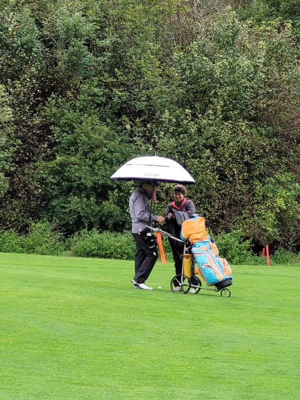 Am Samstagnachmittag spielten unsere Damen im 9-Loch-Matchplay gegen die Damen des GC Föhr. Dabei hofften sie ebenso auf ein erfolgreiches Abschneiden und darauf, dass Petrus ein Einsehen hatte und die Schleusen schließt.