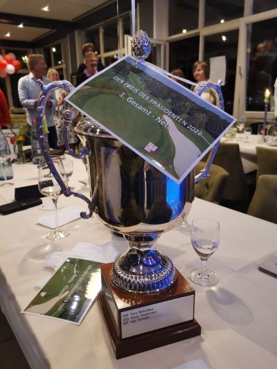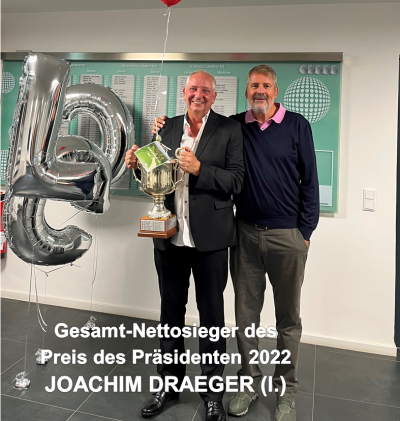 Der Gesamtsieg dieses Turniers wurde unter zwei Spielern entschieden. Joachim Draeger und Dr. Norbert Schöngen lagen Kopf an Kopf mit jeweils 40 Netto-Stableford-Punkten. Joachim Draeger gewann im Computer-Stechen das Turnier. Wir gratulieren ihm herzlich zum Sieg. Sein Name wird nun auf den Pokal des „Preis des Präsidenten“ graviert und geht damit in die Geschichte unseres Vereins ein.