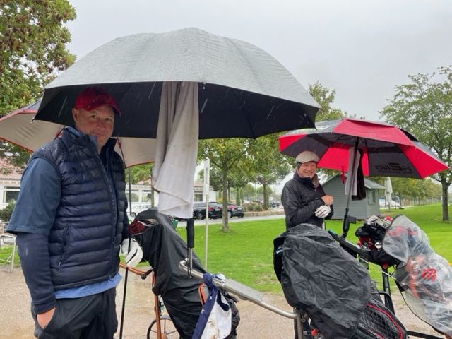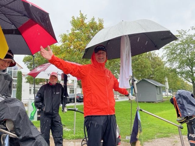 Diesmal ließ uns der Wettergott im Stich und es regnete den ganzen Tag - ohne Unterlass. Die Flights waren so aufgestellt, dass die Spieler mit den besten Ergebnissen auch zuletzt gestartet sind. Völlig durchnässt sind alle nach der Runde reingekommen. Einige Spieler haben noch schnell der Sauna einen Besuch abgestattet, um die "Kerntemperatur" vor der Siegerehrung auf ein normales Level zu heben. Trotz der widrigen Wetterlage sind tolle Ergebnisse gespielt worden. Von hinten, aus dem Nichts, kam Hubert Bihler mit 46 Nettopunkten und holte sich den Tagessieg. Martyn Bennett spielte wieder 34 Bruttopunkte.