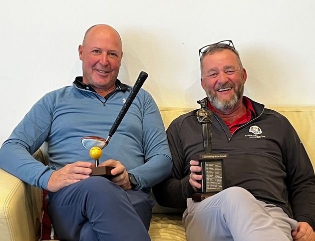 So lagen Martyn und Hubert punktgleich mit 115 Gesamt- Nettopunkten vorne und im Stechen hat dann Martyn Bennett den Nettopokal gewonnen. Aufgrund des Doppelpreisausschlusses hat Martyn den Bruttopokal an Erik Düppen, der mit 85 Bruttopunkten 2. Sieger geworden ist, abgegeben. Glückwunsch an die Sieger.