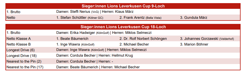 Ende Mai fand das Benefizturnier des Lions Club Leverkusen statt. Die gute Teilnehmerzahl von insgesamt 57 Spielern war mit Sicherheit der Tatsache zu verdanken, dass wir das Turnier an einem der heiß begehrten Wochenenden durchführen konnten und wir jedem Spieler die freie Wahl eingeräumt haben, 9- oder 18-Loch zu spielen. Die vorherigen Mai-Wochen waren sehr sonnig, und wie vor jeder Outdoor- Veranstaltung hoffte das Lions-Orga-Team, dass der Wettergott es gut meint. Nun ja, er war nicht unser allerbester Freund, relativ kühl und gelegentlich regnerisch, aber das konnte die Stimmung der Spieler:innen auf der Runde nicht trüben. Und zum späten Nachmittag ließ der Wettergott uns zumindest den Welcome Back Drink am Abend trocken und entspannt genießen. Alle Spieler:innen kamen gut gelaunt an den Empfangstisch, an dem sie von LIONS Mitgliedern empfangen wurden, um ihre Tee-Geschenke und Scorekarten in Empfang zu nehmen. Mit den vielen Tee-Ge schenken gingen die Spieler mit gut gefüllten Golfbags auf die Golfrunde, u. a. gab es Geschenke mit Golfbällen, Kosmetiktaschen von Hebbel, Trinkflaschen der Eulen-Apotheke von Dr. Sabine Stausberg, Getränke, Bananen etc. Allein der Empfang war bereits ein großes „Hallo“, viele kannten sich von den Lions- Turnieren der letzten Jahre. Das herzliche Wiedersehen und die familiäre Atmosphäre ließen eine mögliche (An-) Spannung vor dem Turnier glatt vergessen. Am Halfway-Haus wurden die Spieler:innen später von weiteren LIONS-Mitgliedern bestens betreut und versorgt. Das Cafe Restaurant Feininger´s hatte dort leckere Quiche und Blechkuchen sowie Tee, Kaffee und kalte Getränke vorbereitet. Am Abend startete die Veranstaltung mit Sekt, Bier und anderen Getränken sowie mit leckerem Fingerfood. Dr. Lars Kogel, der Präsident der LIONS Clubs Leverkusen, eröffnete mit einer kurzen Ansprache den offiziellen Abend und konnte verkünden, dass die Teilnehmer des Turniers über 4.000 € „erspielt“ haben. Mit dem Geld unterstützt unser Lions-Hilfswerk die Ukraine-Flüchtlinge in Leverkusen. Nach einem gelungenen Essen mit vielen weiteren Gästen genossen alle Teilnehmer den Abend auf der Club-Terrasse. Zuletzt möchten wir uns noch ganz herzlich bei allen Sponsoren bedanken, die die vielen Preise für die Gewinne ermöglicht haben, sowie dem Sekretariat und den Greenkeepern des Golfclub Leverkusen e.V. und den vielen Helfern, die dieses tolle Turnier und sein Ergebnis für den guten Zweck ermöglicht haben. Wir freuen uns auf das nächste Jahr und hoffen wieder auf zahlreiche Spieler:innen und Unterstützer, um weiterhin die dringend benötigten Gelder „spielend“ einer sozialen Einrichtung zur Verfügung stellen zu können.