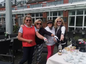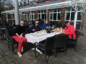 Als die Flights so nach und nach wieder im Clubhaus eintrafen, ließ es das Wetter sogar zu, dass die meisten Teams auf der Terrasse im Sonnenschein sitzen konnten. Unser Restaurant begrüßte die Rückkehrer: innen mit einem leckeren Buffet aus italienischen Vorspeisen, Gnocci, Saltimbocca und Kartoffelgratin. Dass Alle trocken geblieben sind und das gute Essen trugen zur fröhlichen und entspannten Stimmung ebenso bei wie die schönen Oster-Preise, die es zu gewinnen gab.