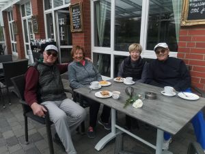Mit Sonnenschein und kaltem Wind starteten fast 90 Teilnehmer:innen am Montagmorgen ab 10 Uhr in das Turnier. Gespielt wurde ein bunter Cocktail-Vierer (Chapman-Vierer, Vierer mit Auswahldrive und Klassischer Vierer), der viel Abwechlung während der Golfrunde versprach. Zur Halfway-Pause gab es heißen Kaffee und Streuselkuchen und natürlich durfte der Eierlikör zur Halbzeit nicht fehlen.