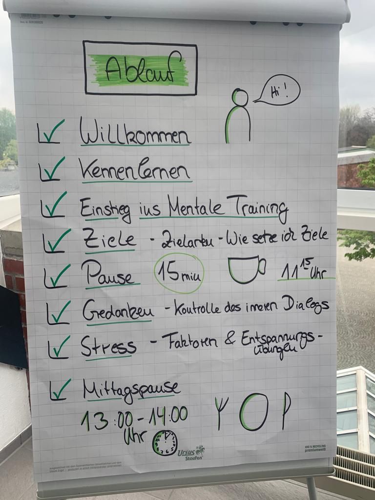 Am Vormittag beschäftigte sich das Team mit ihren Zielen, ihren Gedanken (Kontrolle des inneren Dialogs) und dem Thema Stress.