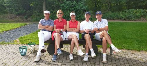 Nicht vergessen zu erwähnen, möchte ich Britta Hasselmann und Martina Harbecke-Vetter, die ebenfalls zum Team gehören. Britta traf in ihrer Samstagspartie auf eine Topspielerin aus Krefeld und hatte sehr zu kämpfen, im Spiel zu bleiben. Schlussendlich musste sie sich jedoch geschlagen geben. Martina hat uns an allen Tagen sehr tatkräftig als Caddy motiviert und über die gesamte Saison verstärkt. Dafür ein herzliches Dankeschön. Ebenso gilt unser Dank unseren Caddy-Männern: Jürgen Röller, Uwe Dahlhaus und Michael Gwosdek, die uns ganz toll umsorgt, mitgefiebert und angefeuert haben. Nur Dank dieser Gemeinschaftsleistung haben wir es geschafft, dass der GC Leverkusen bei den Damen der Altersklasse ab 50 zu den 16 besten Mannschaften in Deutschland gehört. Darauf sind wir sehr stolz. Welche Platzierung wir dann letztendlich beim Bundesfinale erreichen, zeigt sich vom 14. – 17.9. im Golfclub Hildesheim/Bad Salzdetfurth. Wir werden berichten… Ach so, noch was: Bitte Daumen drücken nicht vergessen!