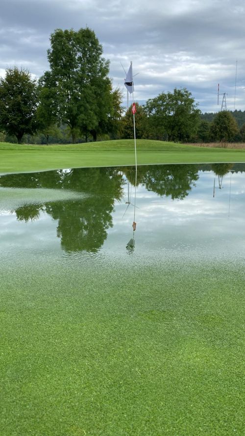 Wir hatten uns über vier Vorrundenspiele als Drittplatzierte für das NRW-Endspiel am 19./20.8. im GC Erftaue qualifiziert. Im Gegensatz zu den Zählspielen im Ligabetrieb, wird das Finale ausschließlich im Lochspiel ausgetragen. Woche um Woche galt es nun, sich darauf gut vorzubereiten - im Matchplay gegeneinander und diversen Konstellationen des Klassischen Vierers. Bei einer ersten Proberunde am Mittwoch zeigte sich Yvonne Hageleit-Schreckenberg ganz besonders präzise. Ihr gelang an Loch 7 ein Hole in One. Ein gutes Ohmen, wie sich zeigen sollte. Freitags vor dem Endspielwochenende ging es zusammen mit unserem Trainer, Tim Jansen, auf die Proberunde. Alle waren hochmotiviert und voller Anspannung auf die Wettspiele am Samstag und Sonntag. Kaum an Bahn Zwei angekommen öffnete Petrus seine Schleusen. Aber so, dass in kürzester Zeit der Platz und die Grüns unter Wasser standen und unsere Übungsrunde eher einer Schwimmstunde ähnelte. Während der sintflutartigen Wolkenbrüche hat uns Tim im Gewitterhäuschen mit Theorie und der Auffrischung besonderer Regelfragen richtig gut eingestimmt. Auch seine mentalen Tipps waren für uns nochmals sehr wertvoll.