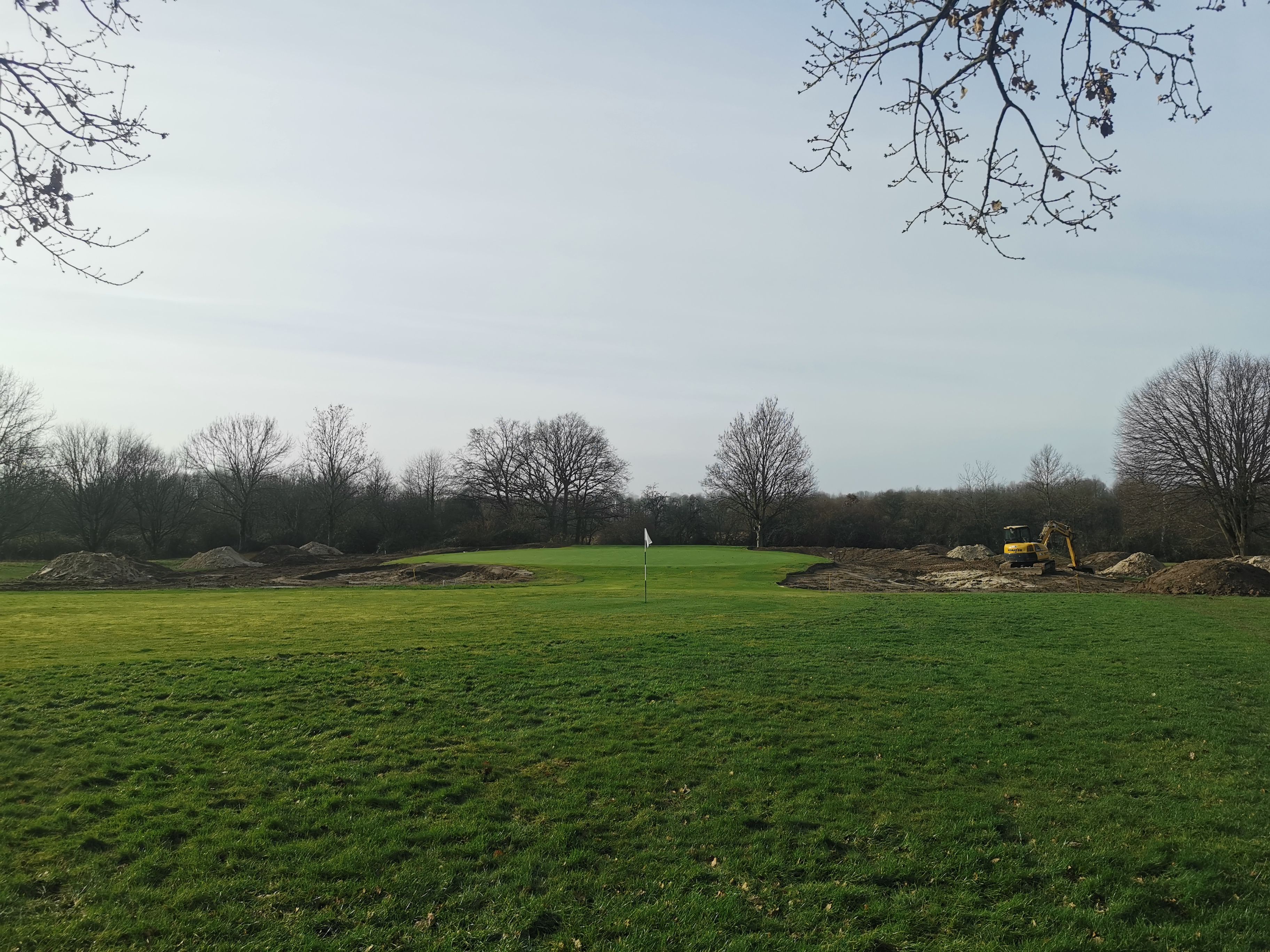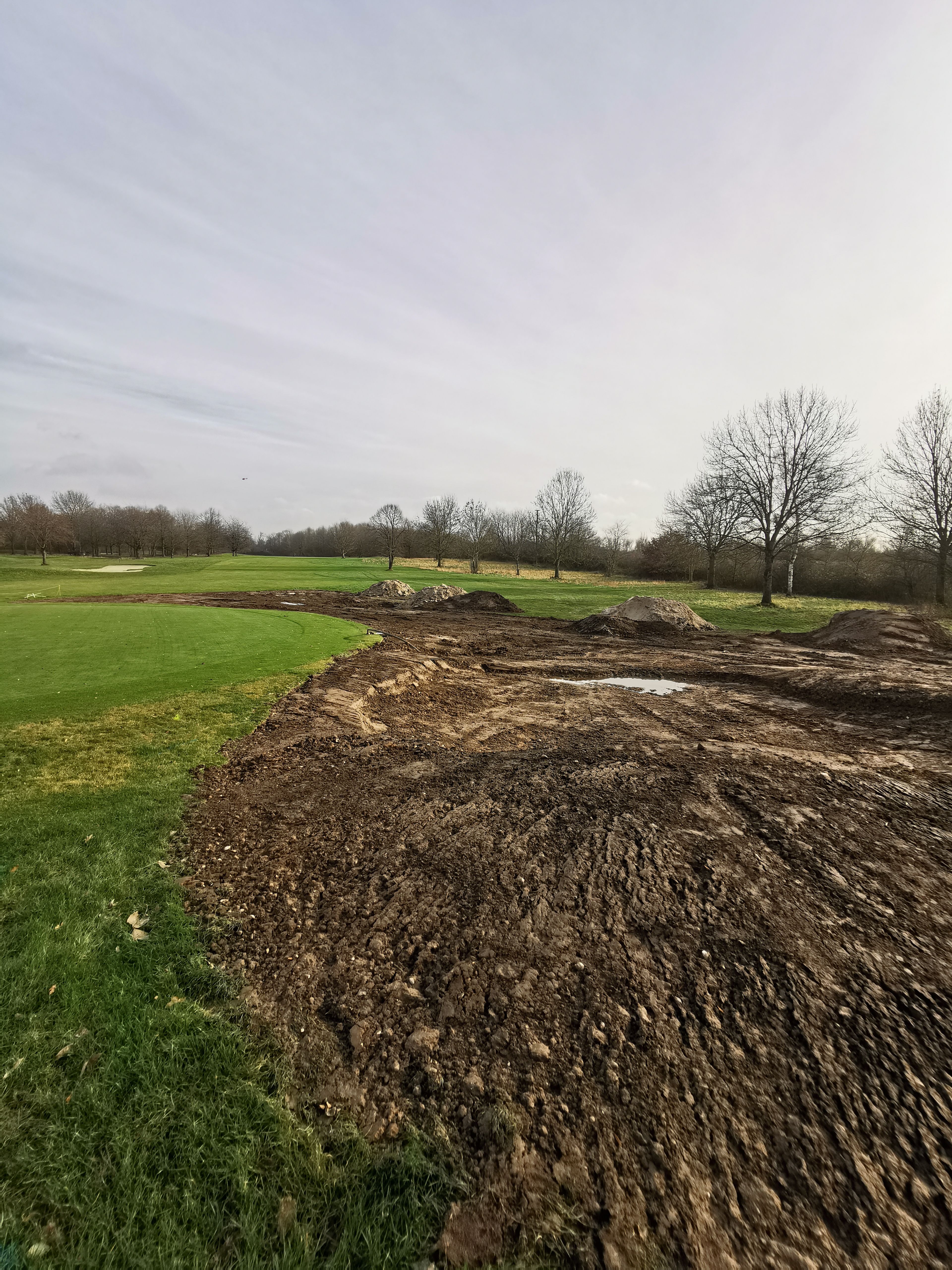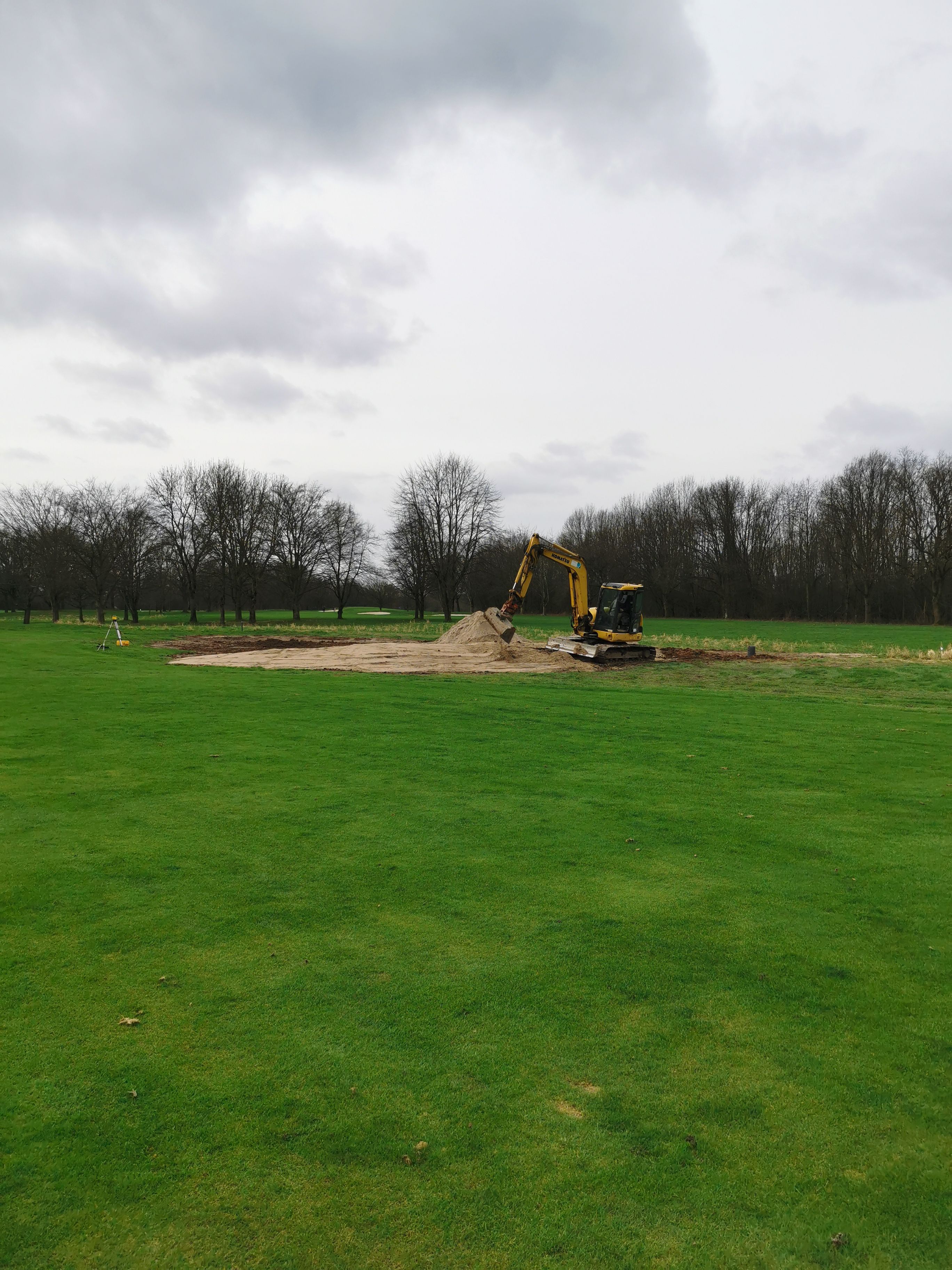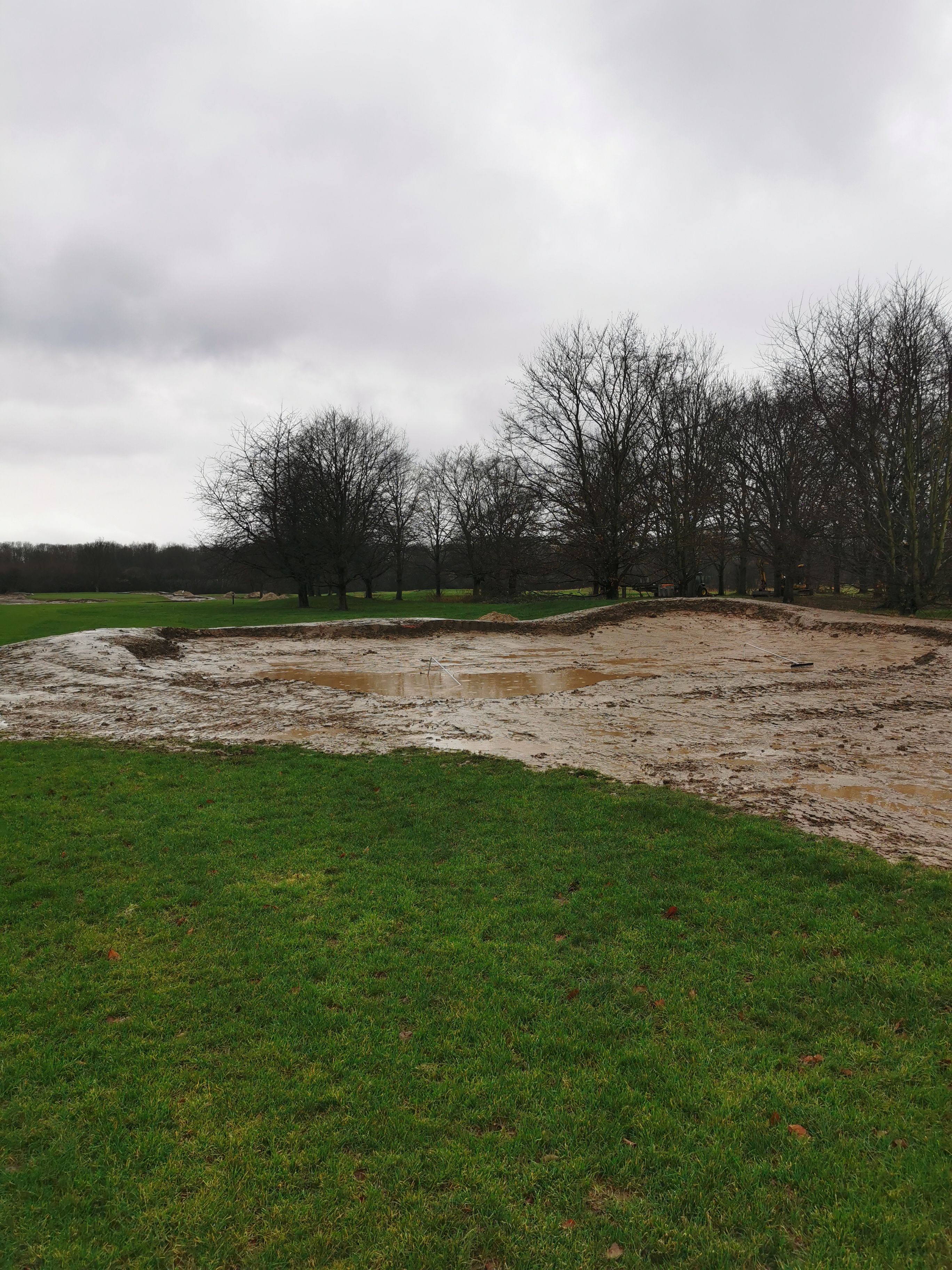 Die Arbeiten am Bunker der Bahn 4 haben gestartet! Links vor dem Grün entsteht ein kleiner Bunker und rechts neben dem Grün der Bunker wird erneuert.