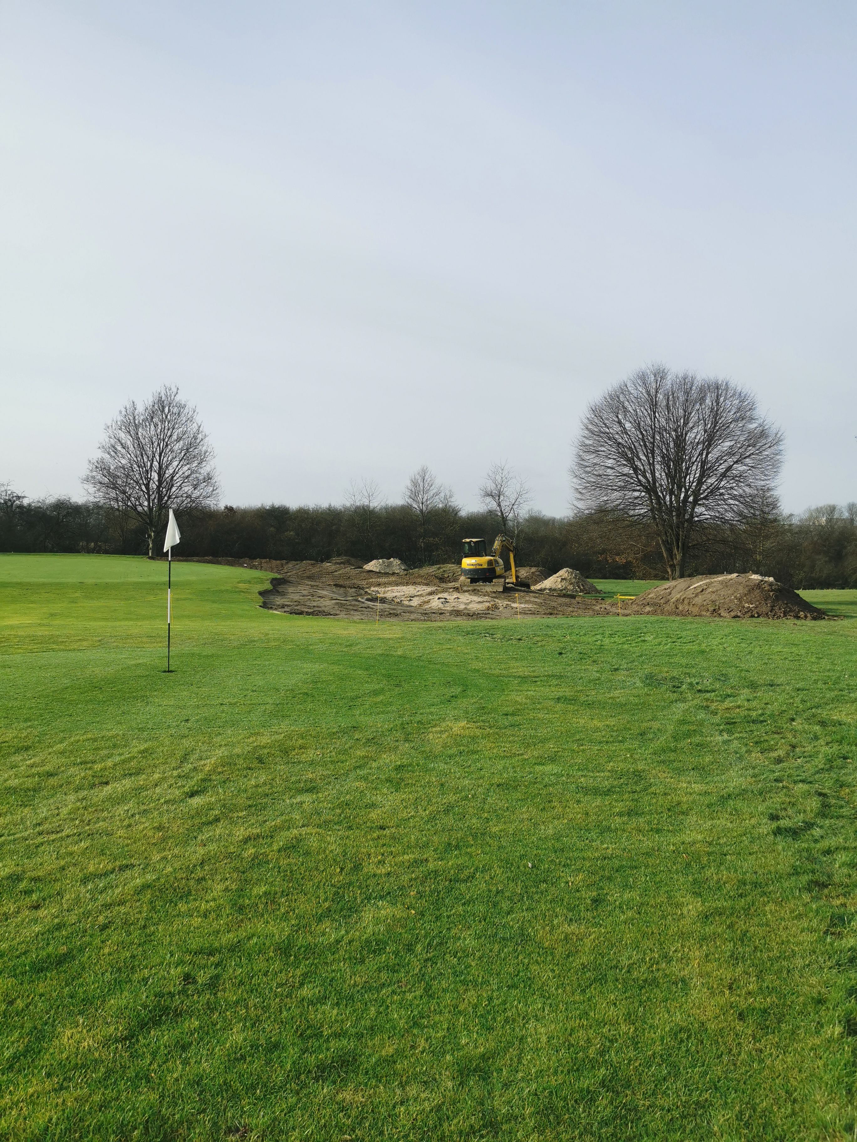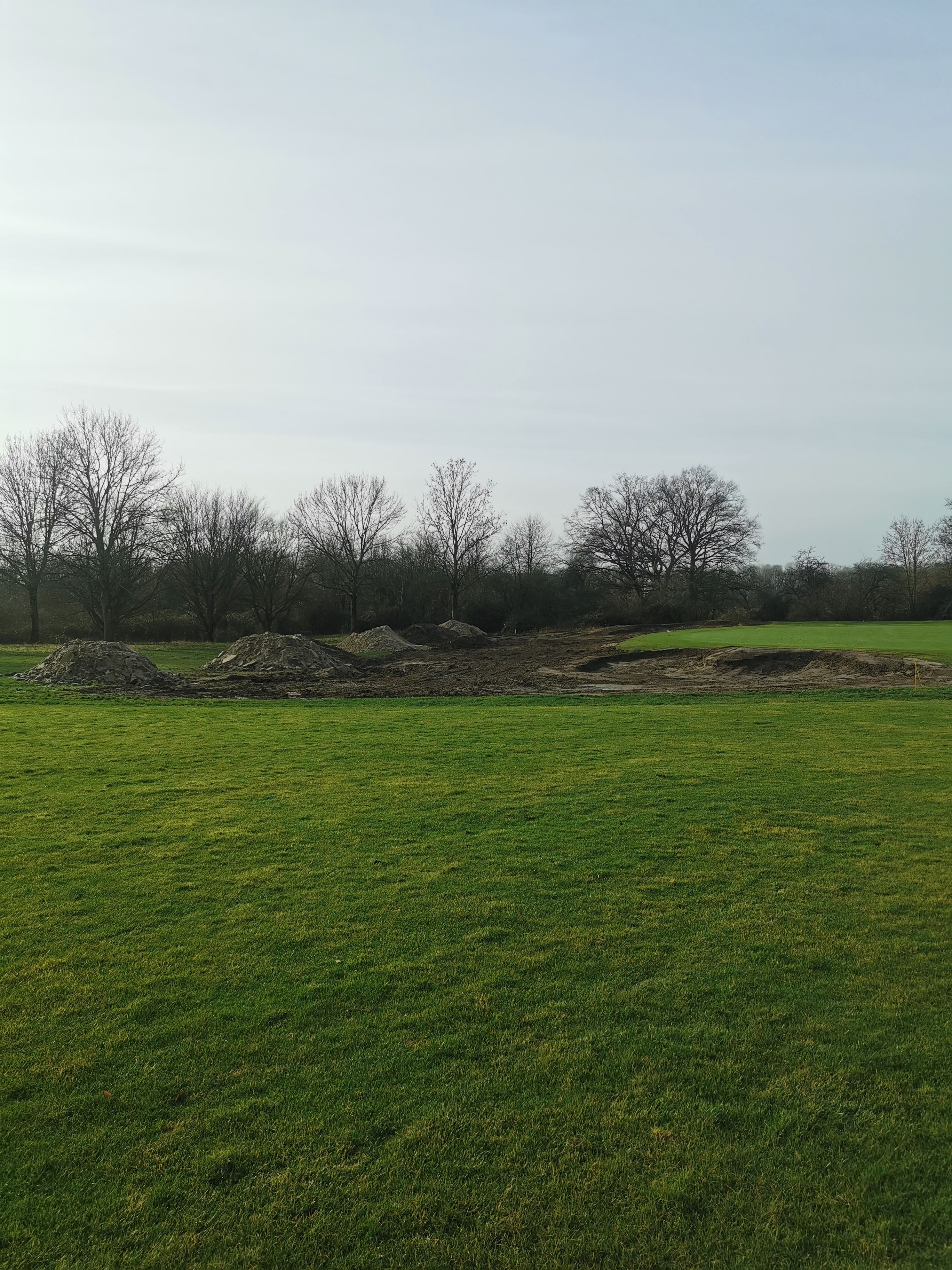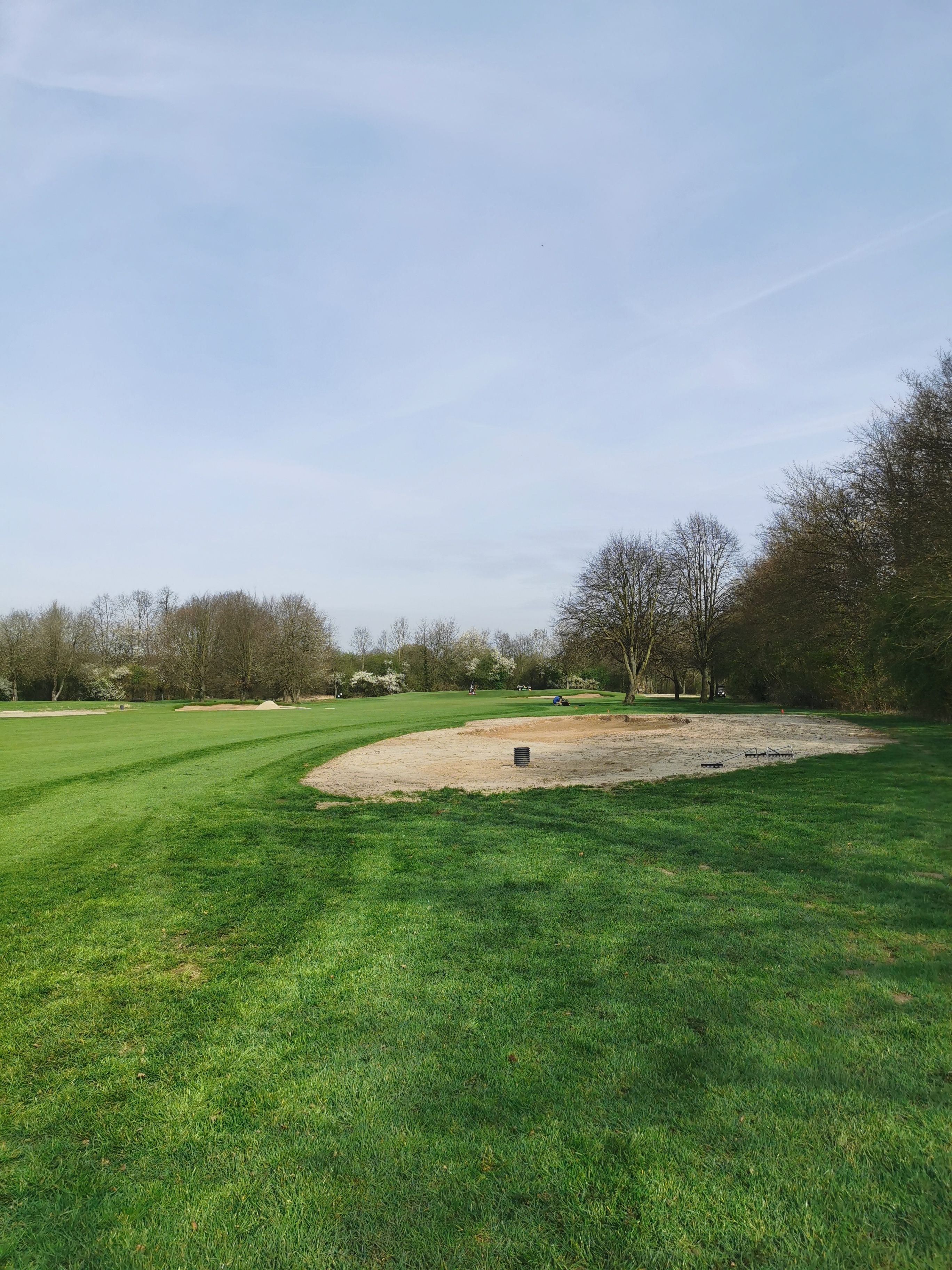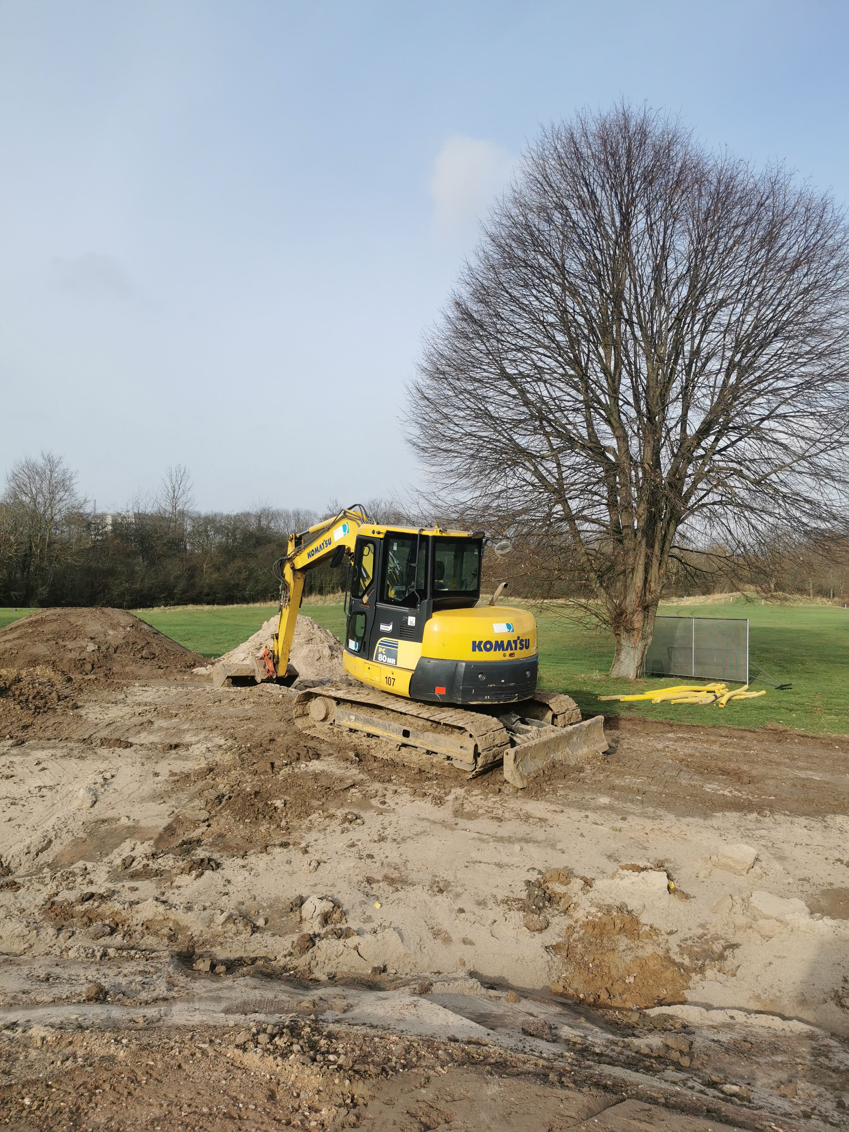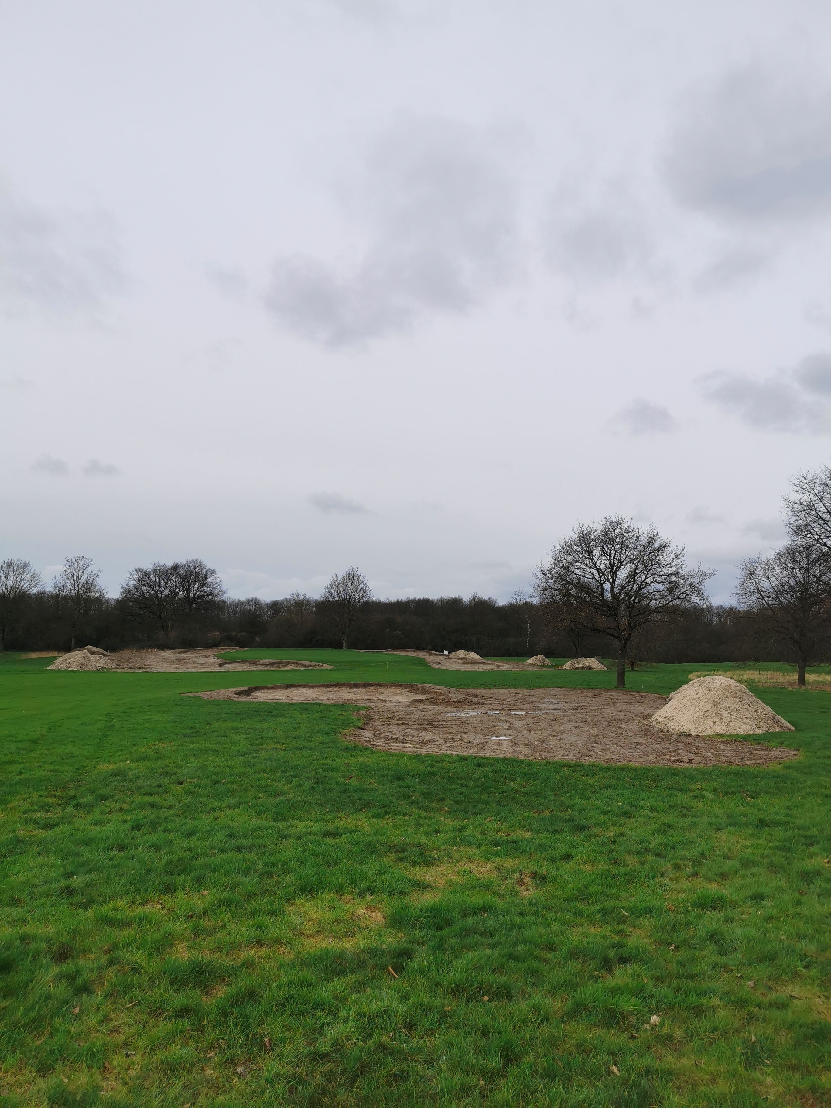 Die Arbeiten am Bunker der Bahn 4 haben gestartet! Links vor dem Grün entsteht ein kleiner Bunker und rechts neben dem Grün der Bunker wird erneuert.