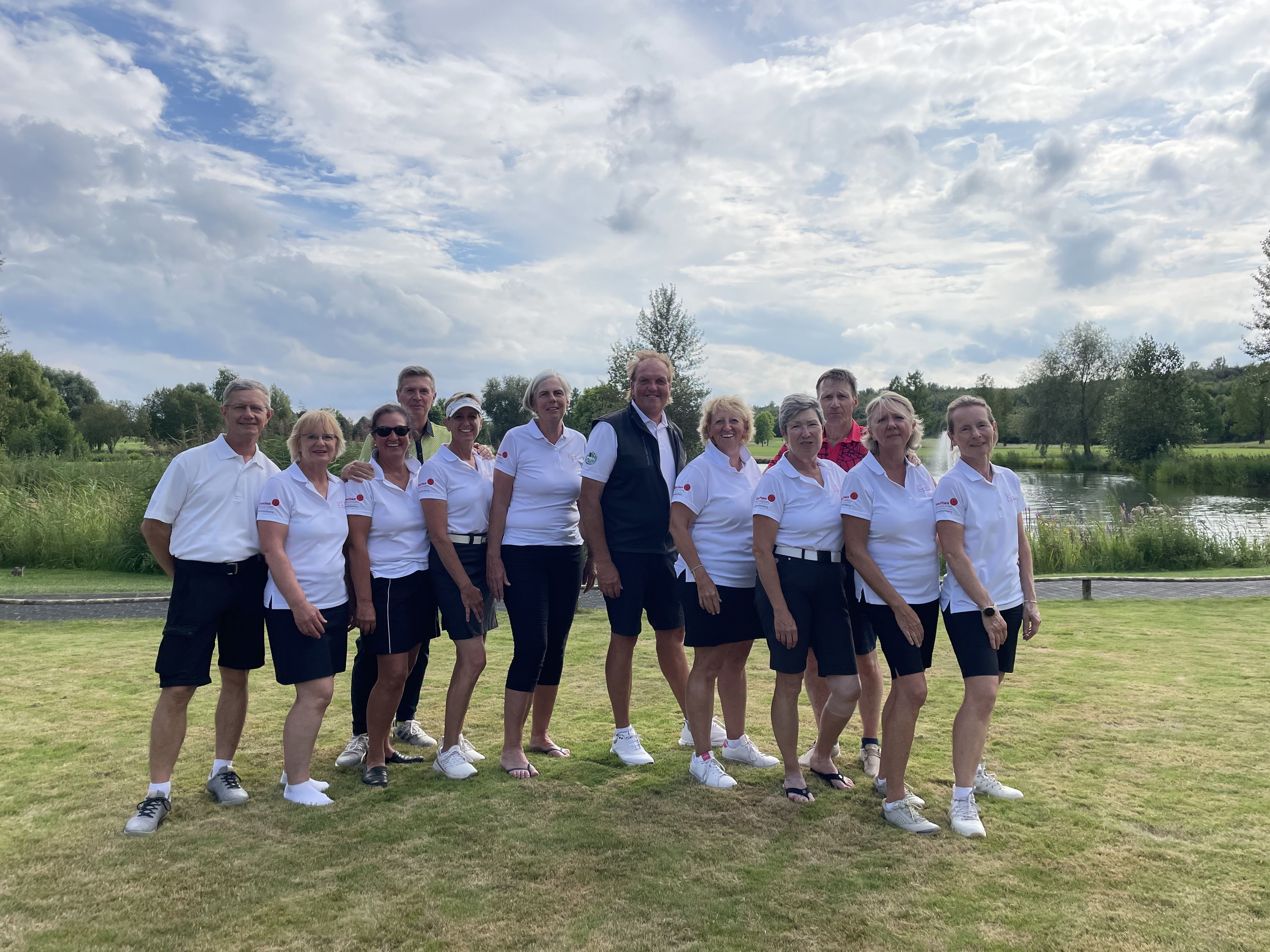 Aus einem Vierer und 4 Einzeln reichten 2 Punkte zum Sieg und es wurde abgeliefert. Yvonne holte, wieder mit Ersatzspielerin Britta Hasselmann als hervorragender Caddy an ihrer Seite, mit 4&3 den ersten Punkt. Ilona Dahlhaus verlor in ihrem Match mit großem Kampf erst auf der 16.Bahn. Tatjana Röller holte dann den erlösenden 5. Punkt ebenfalls auf der 16. Melanie Düppen führte 1auf auf der 18 und brauchte nicht mehr zu Ende spielen, die Spielerinnen teilten das Match. Zeitgleich gewann der Vierer mit 1auf in einem heiß umkämpften Match. Endstand 6,5 zu 2,5.