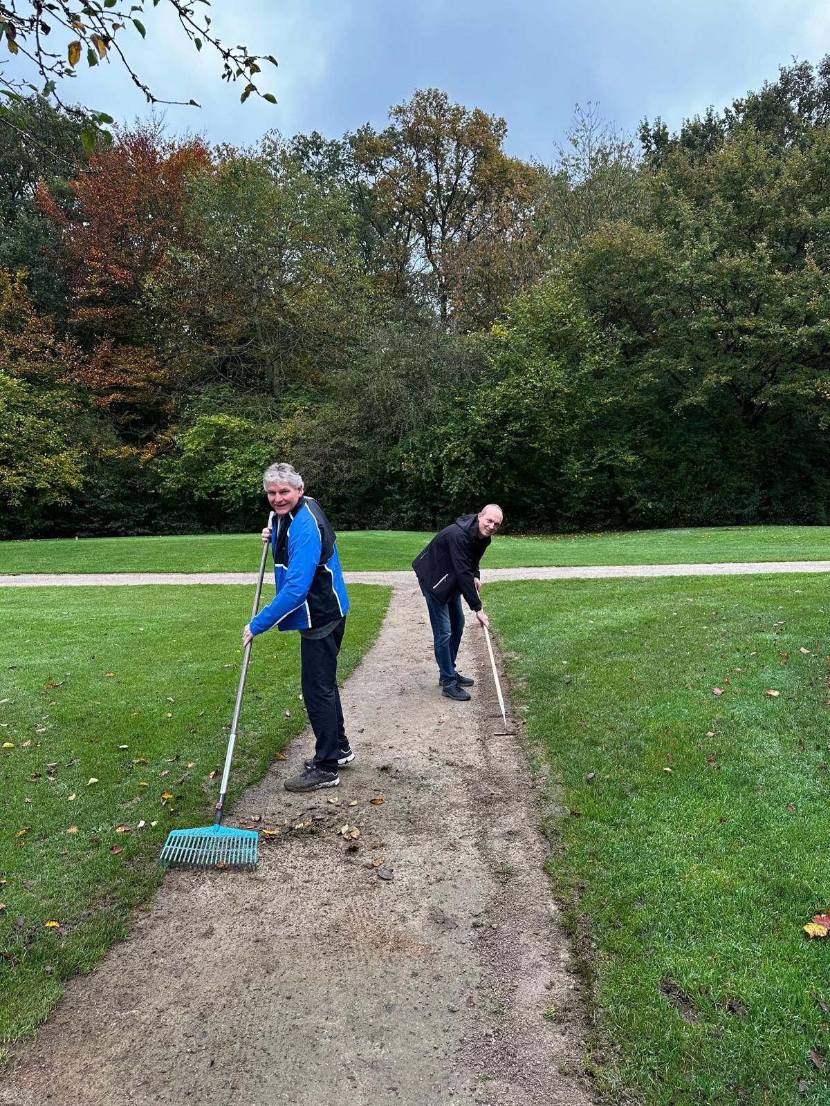 Ein Schwerpunkt der Arbeiten lag auf der Driving Range, wo das Gebüsch zurückgeschnitten wurde, um Golfbälle zu bergen, die sich dort angesammelt hatten. Die Mitglieder waren sehr engagiert, und es gelang, über 3.000 Golfbälle aus den Gebüschen zu holen. Zusätzlich wurden die Caddywege von Unkraut befreit. Ein weiteres Team kümmerte sich um die Beete rund um das Clubhaus.