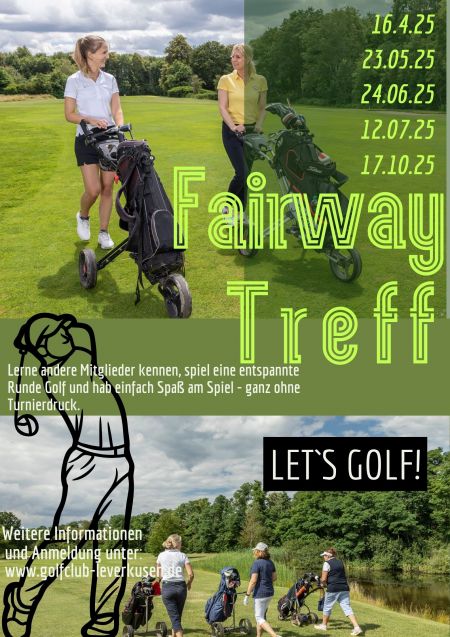 Unser Ziel ist es, neue Kontakte zu knüpfen, gemeinsame Runden zu spielen und dabei in lockerer Atmosphäre die Fairways unseres schönen Platzes zu genießen. Ob Du gerade erst angefangen hast oder schon ein paar Runden hinter Dir hast - beim Fairway Treff ist jeder herzlich willkommen!