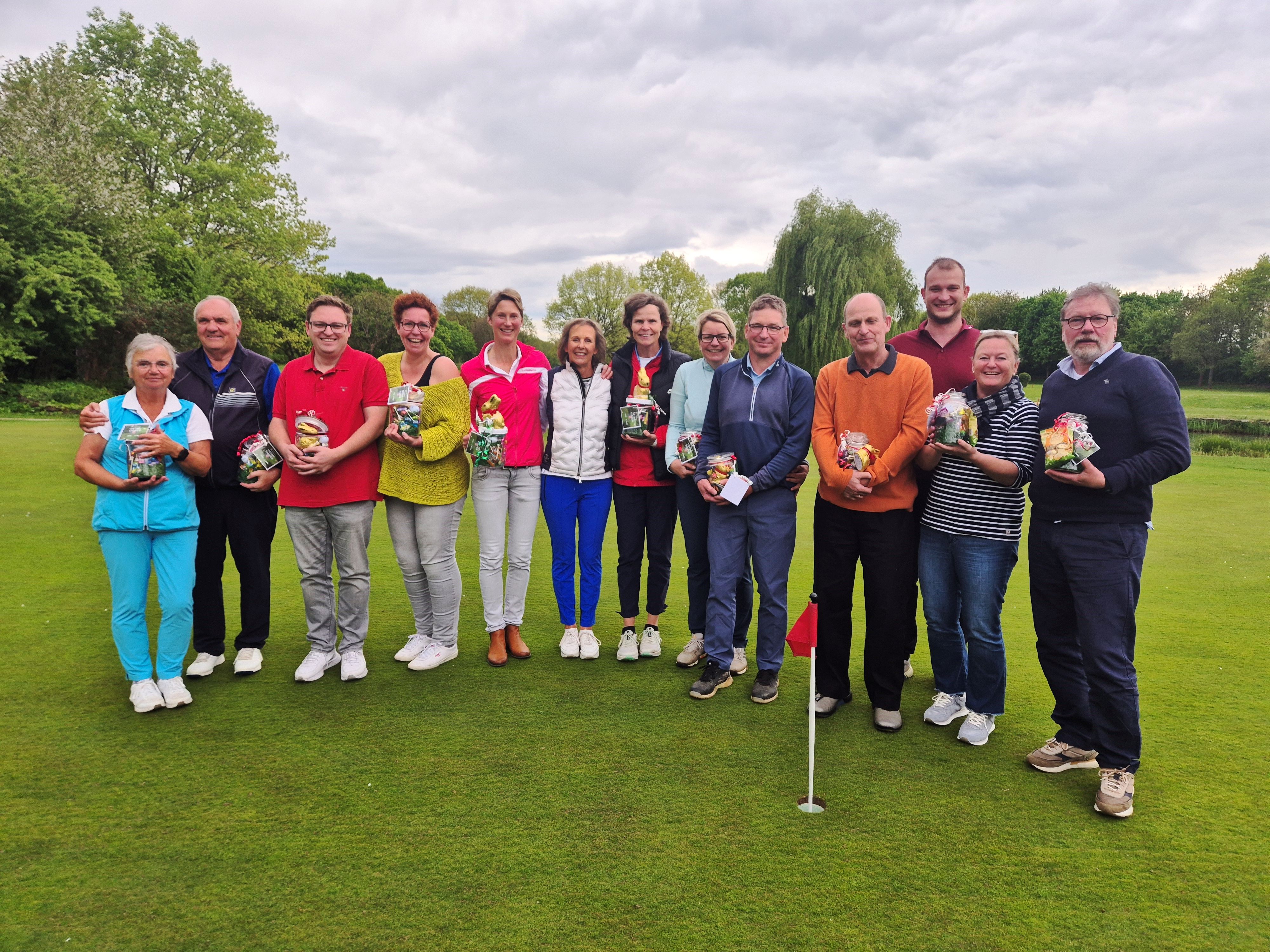 Die Siegerehrung übernahm unsere neue Spielführerin Kerstin Werner. Die Preise hatten viele schon im Clubhaus bewundert: liebevoll dekorierte Gläser mit Ostergras, Schokolade, Golfbällen und Tees.