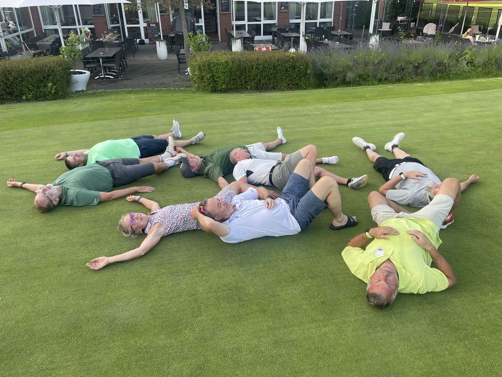 Das Turnier endete auf dem 9. Loch und alle versammelten sich erschöpft und klatschten sich ab. Damit war der erste Golfmarathon im Golfclub um 20:15 Uhr abgeschlossen.