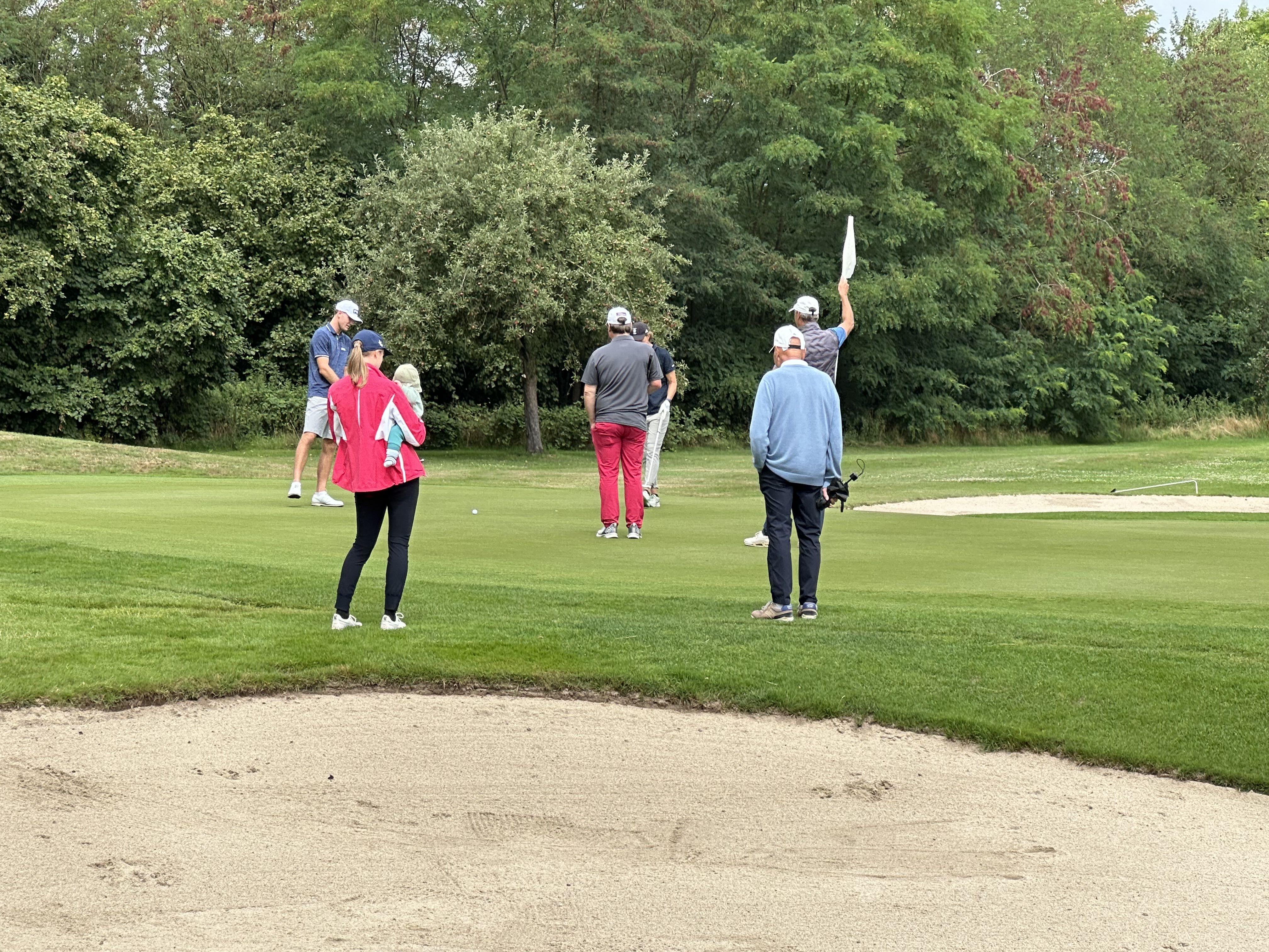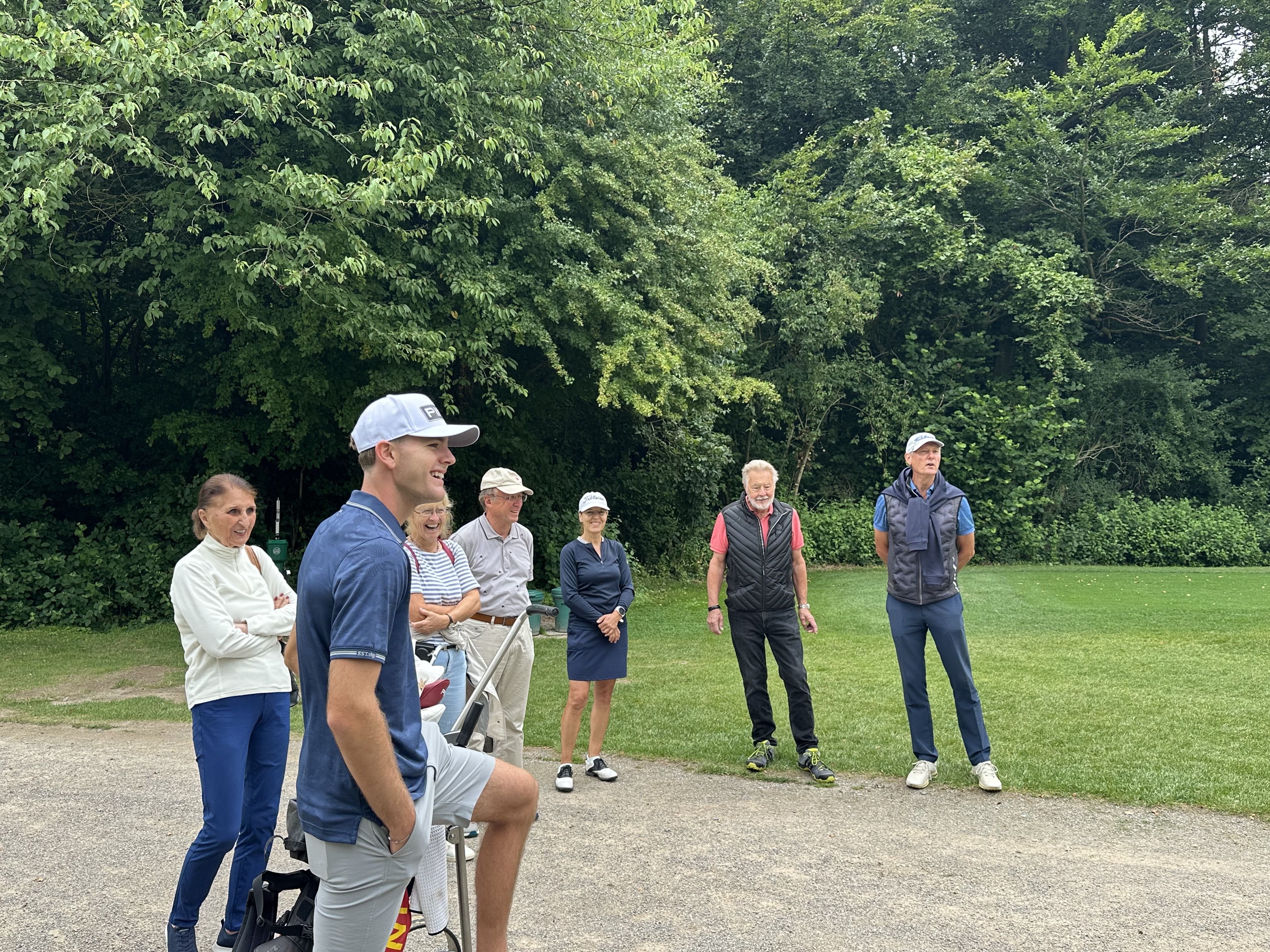 Vor zahlreichen Zuschauern entwickelte sich ein spannendes Spiel. Die Länge und Präzision der Schläge beeindruckte alle Teilnehmer. Mit ein paar unglücklich knapp verpassten Putts spielte er eine 71, so dass Peer die Runde mit fünf Schlägen Vorsprung für sich entscheiden konnte.