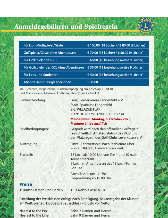 Liebe Golferinnen und Golfer, liebe Lionsfreunde/-innen: