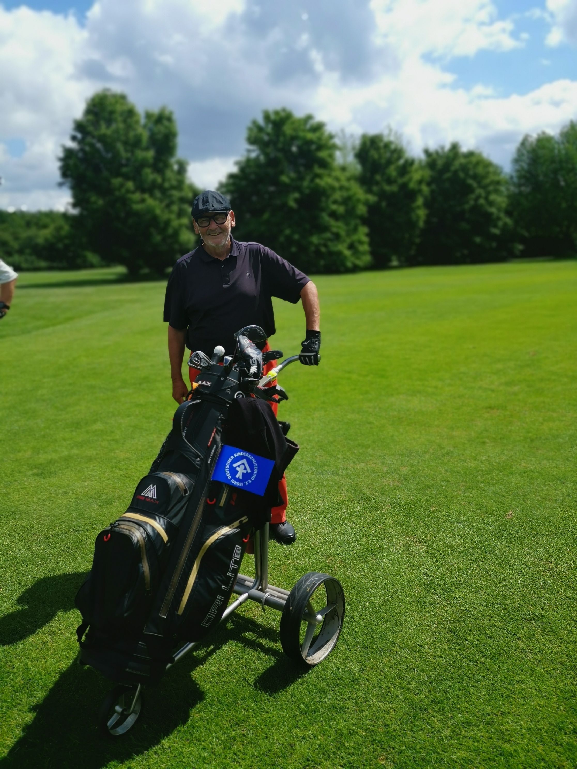 Darüber hinaus konnten die Turnierteilnehmer:innen während der Golfrunde Logo-Golfbälle des Kinderschutzbundes kaufen. Der gesamte Erlös des Golfball-Verkaufs wurde ebenso dem Kinderschutzbund übergeben. Der Turniertag endete mit einer Gesamt-Spendensumme von € 3.630! Vielen Dank an alle, die diesen Turniertag unterstützt haben. Nicht unerwähnt bleibt natürlich die musikalische Begleitung auf der Terrasse unseres Restaurants durch Herbert Sondermann und Klaus Erlinghäuser (Eusi & Klausi), die mit viel Herzblut und kölschen Tönen diesen tollen Tag unterstützt und abgerundet haben.