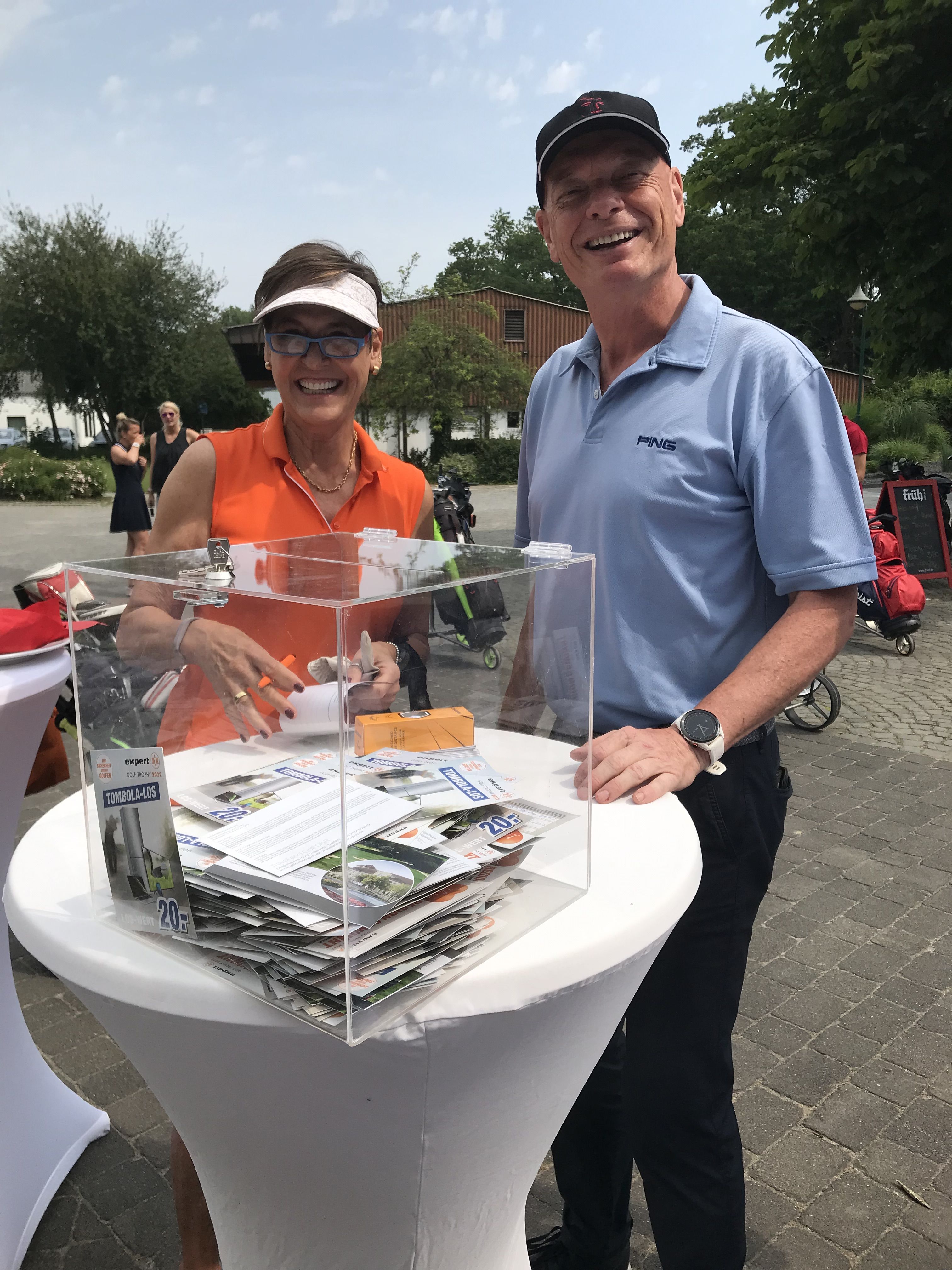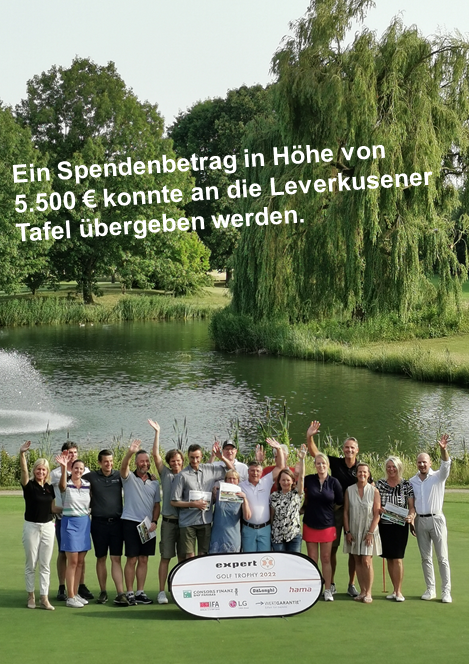 Der „Gute Zweck“ kam an diesem Tag nicht zu kurz: Alle Einnahmen aus dem Verkauf der Tombola-Lose und ein Teil des Startgeldes wurden an die Leverkusener Tafel gespendet. Alexander Wallraff (Geschäftsführer expert Wallraff in Leverkusen) übergab im Rahmen der Siegerehrung den Spendenscheck mit einer Gesamt-Spendensumme von 5.500 € an Dr. Adolf Staffe (1. Vorsitzender der Leverkusener Tafel). Dr. Adolf Staffe dankte allen an dieser Spende beteiligten Teilnehmern:innen und berichtete aus seinem jahrzehntelangen Erfahrungsschatz über das Engagement der Leverkusener Tafel. Alle Turnierteilnehmer:innen wurden vom Organisations-Team und Klaus und Alexander Wallraff vor dem Start persönlich begrüßt und erhielten ihre Scorekarten mit je einem Tombola-Los und außerdem vielen Tee-off-Geschenken wie z.B. das beliebte expert Golf- Poloshirt, Golfbälle, Golf-Handschuhe und kleine Snacks. Nicht zu vergessen, die leckere Kaffeeauswahl, die die mobile Kaffeestation der Fa. DeLonghi anbot. Jede:r Teilnehmer:in hatte die Möglichkeit, durch den Kauf weiterer Tombola-Lose, die Chance auf einen Gewinn zu steigern. Viele Sonderwertungen waren ausgeschrieben: Auf der Bahn 15 wurde der Longest Drive für die Netto-Klassen B und C ausgetragen. Bahn 17 ist für die Sonderwertung Nearest-to-the-Pin auch im expert-Turnier sehr beliebt, und auf Bahn 18 hatten alle Golfspieler:innen der Netto-Klasse A die Chance, den Preis des Longest Drive zu gewinnen. Alle Preise wurden für Damen und Herren getrennt gewertet. Zusätzlich gab es an Bahn 17 eine Hole-in-oneChance, die von Leisure Golf gesponsert wurde. Der Hole-inone-Preis ist der einzige Preis, der nicht gewonnen wurde, dafür wurde das mit dem E-Trolley präsentierte Golfbag auf der im Anschluss an das Turnier stattfi ndenden Tombola als Preis ausgegeben. Und um es mit den Worten einer Mitspielerin abzuschließen: “Sonntag war tatsächlich wieder ein Wow-Tag und hat viele sehr glücklich gemacht. Ein Mega-Turnier!“