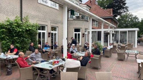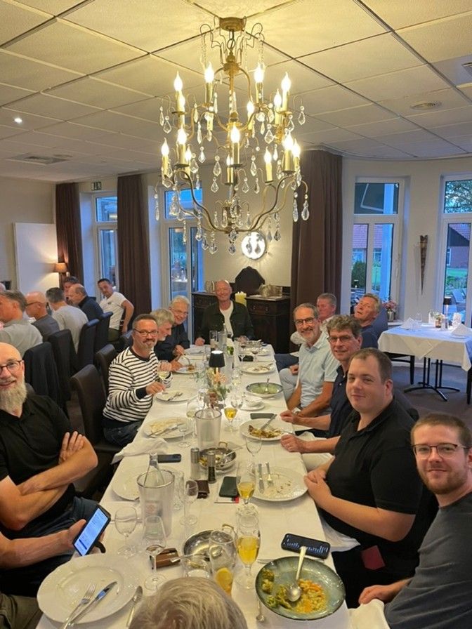 Am letzten Tag haben wir nach dem Auschecken direkt am Hotel den „Lufthansa Golfplatz“ gespielt. Ein wunderschöner Par 70 Platz, der mit knapp 5.000 Metern ziemlich kurz ist, aber teilweise recht enge Spielbahnen hat. Im Gegensatz zu 2022, als es wie aus Eimern gegossen hatte, war der Wettergott diesmal weiterhin auf unserer Seite und hat mit bestem Spätsommerwetter geglänzt. Mit sensationellen Ergebnissen ist der letzte Spieltag beendet worden. Während wir auf der Leinwand das Finale des Ryder Cup verfolgt haben, konnte die finale Siegerehrung stattfinden. Zuerst wurden wieder die Tagessieger gekürt und mit 45 Nettopunkten hat Hilko Malek gewonnen. Erik Düppen konnte mit einer sensationellen Runde und 37 Bruttopunkten den Bruttopreis des Tages für sich entscheiden. Mit seiner super Runde am Finaltag hat, aus dem Mittelfeld kommend, Hilko Malek alle überholt und ist mit insgesamt 114 Punkten Gesamtsieger in der Nettowertung geworden. Andreas Wiebach hat mit 109 Punkten den zweiten Platz belegt. In der Gesamtbruttowertung hat sich Martyn Bennett mit 94 Bruttopunkten den Pokal gesichert. Erik Düppen wurde mit 86 Punkten Zweiter. Nochmals herzlichen Glückwunsch an die Sieger. Die im kommenden Jahr für die Busfahrt - erwartungsgemäß leckeren Brötchen - werden von Hilko angerichtet. Regina Malek hat schon verkündet: „Das muss er wohl selbst machen…“. Martyn wird dann für den Kaffee zuständig sein. Claudia Bennett hat wohl noch einmal Glück gehabt. Der Vorschlag, nächstes Jahr die Spielform zu wechseln wurde mit viel Zustimmung bedacht. Nächstes Jahr werden die Teilnehmer in zwei Teams aufgeteilt und spielen gegeneinander ein Ryder-Cup-Turnier.