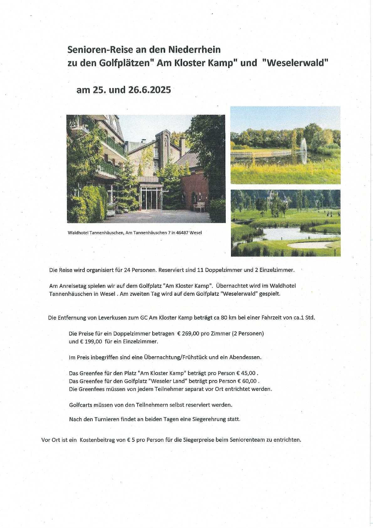 Wir haben im GC Erftaue 6 Startzeiten ab 11.00 Uhr reserviert. Das GF beträgt €45,-. Gespielt wird nicht handicap-relevant.